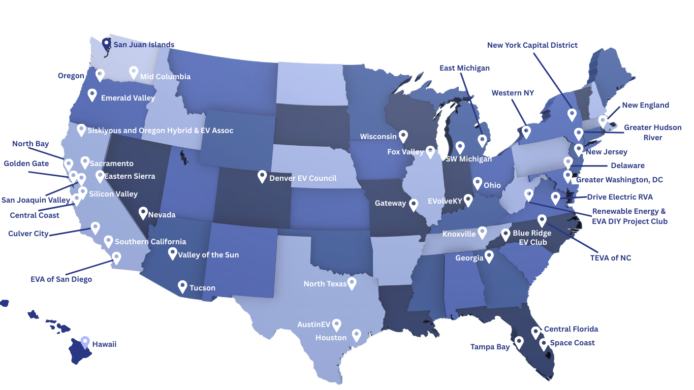 Electric Vehicle Association local chapters are made up of a diverse set of volunteer members who welcome those with all levels of electric vehicle knowledge. Select a chapter near you and join today!